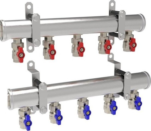 Sestavy průmyslových nerezových rozdělovačů / sběračů jsou určeny pro instalaci a použití v otopných systémech, chladicích systémech a v průmyslových aplikacích, kde je požadavek na vysoký průtok média. Zajišťují distribuci otopné / chladicí vody do jednotlivých otopných smyček nebo větví s možností uzavírání a regulace jednotlivých výstupů. Svým technickým řešením je sestava předurčena pro rychlou a snadnou montáž. Jednotlivé výstupy sestav mohou být osazeny kulovými uzávěry s barevným rozlišením přívodu a zpátečky, nebo ve variantě s termostatickými ventily a regulačními šroubeními. Dodávají se v dimenzích 6/4″ a 2″ s osovou vzdáleností výstupů 100 mm. Provedení z nerezové oceli AISI 316L zajišťuje vysokou odolnost proti korozi. Provedení závitů je v souladu s ISO 228/1.