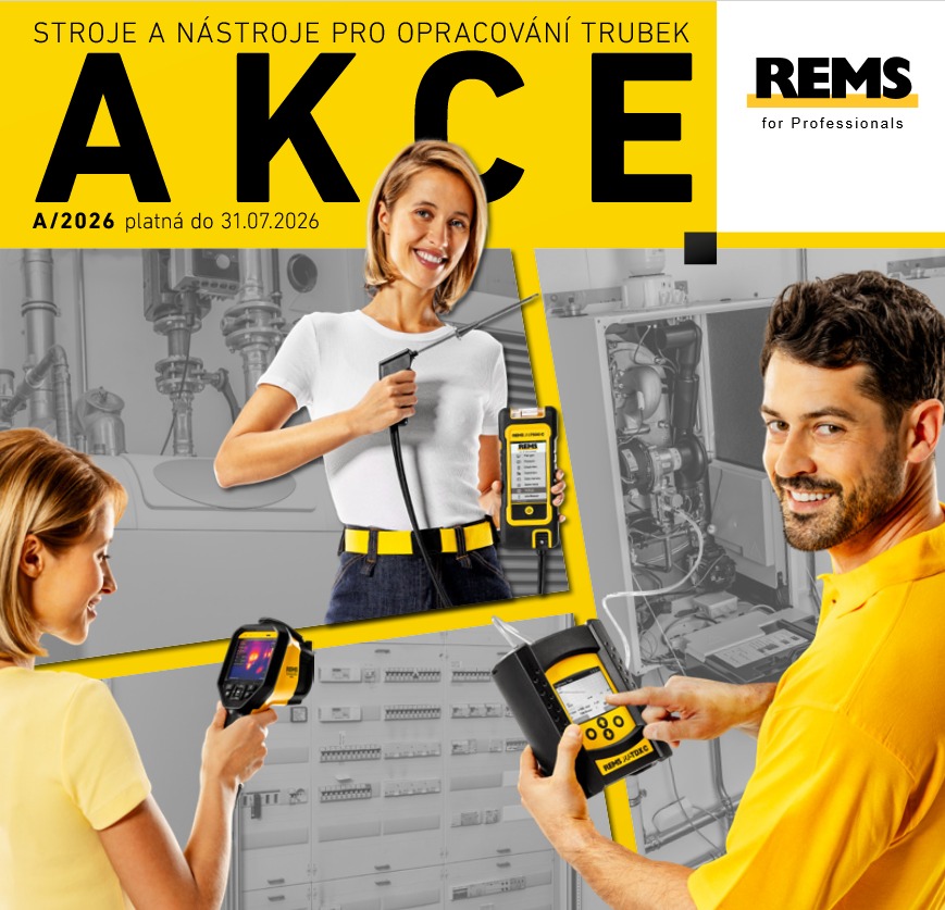 Pro zájemce je možné nezávazné předvedení nářadí pro instalaci trubek rozvodů vody, topení, plynu, kanalizace a klimatizace prostřednictvím odborných poradců REMS. V akčním jarním katalogu REMS najdete doporučené prodejní ceny bez DPH. Akce platí do 31. 7. 2026. Prodej pouze přes odborné prodejce.