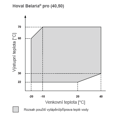 • Výstupní teplota: až 70 °C (v závislosti na venkovní teplotě)