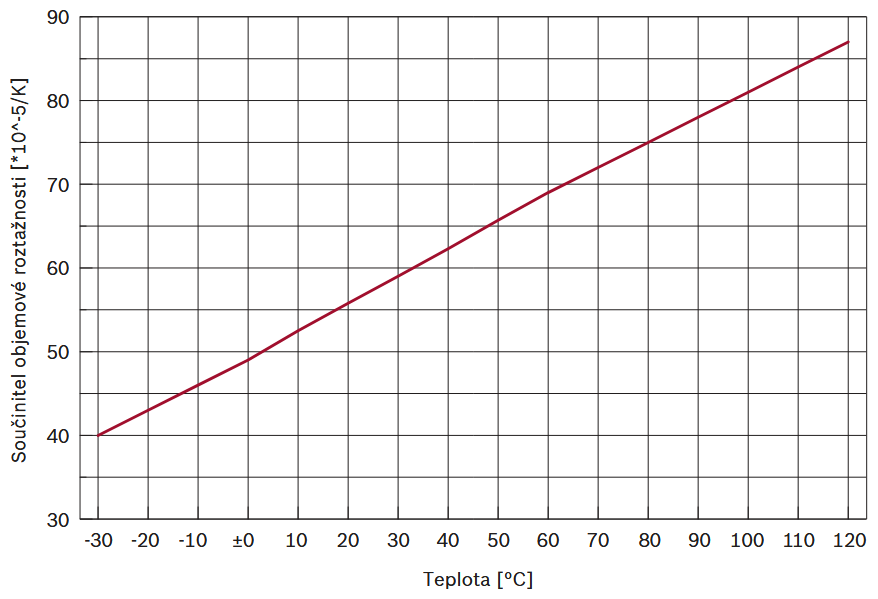 Protože z roztažnosti potřebujeme odvodit expanzní objem, musíme určit koeficient teplotní roztažnosti konkrétní nemrznoucí kapaliny β pro nejvyšší teplotu, která se v primárním okruhu může vyskytnout.